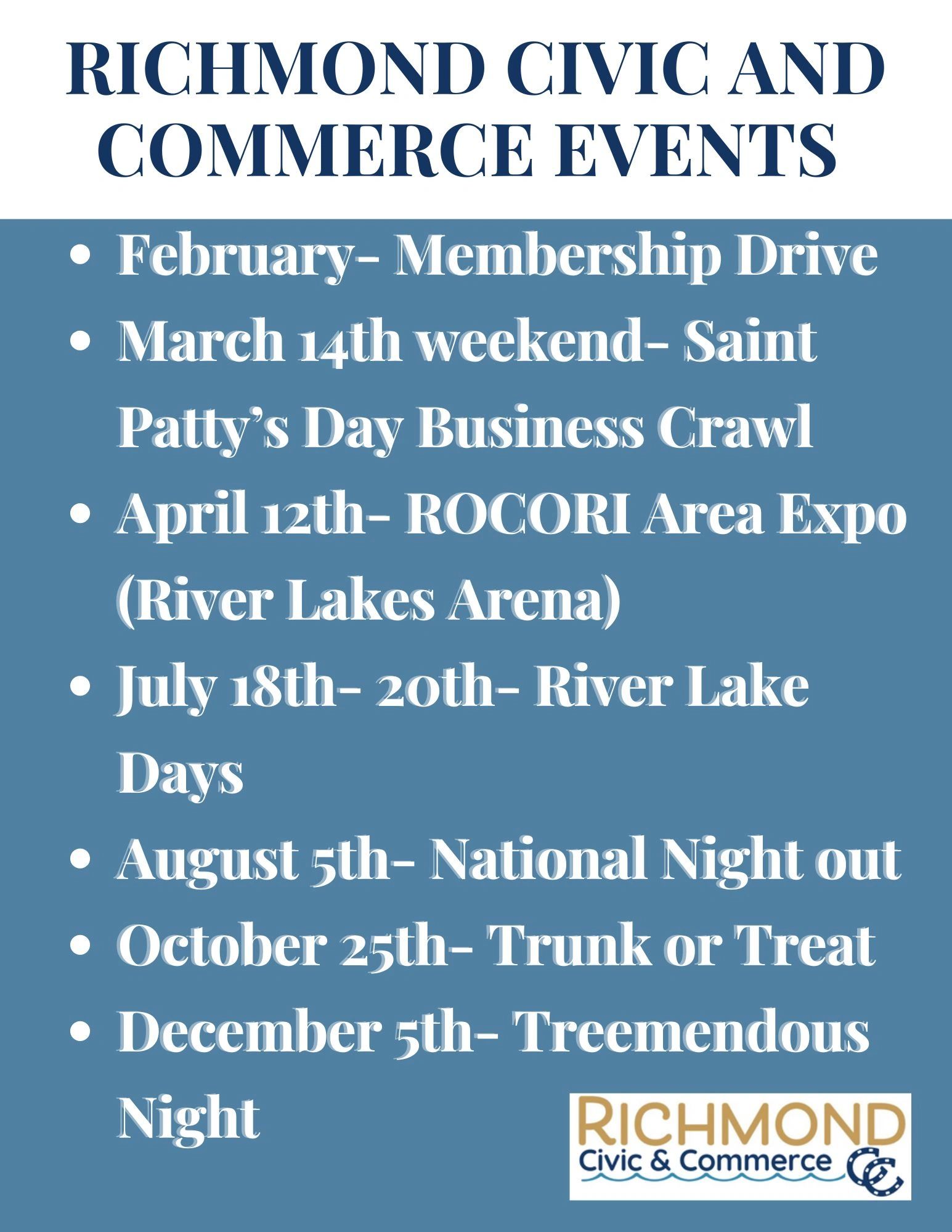 Click below to find out more and see how you can participate in upcoming events sponsored by Richmond Civic and Commerce.